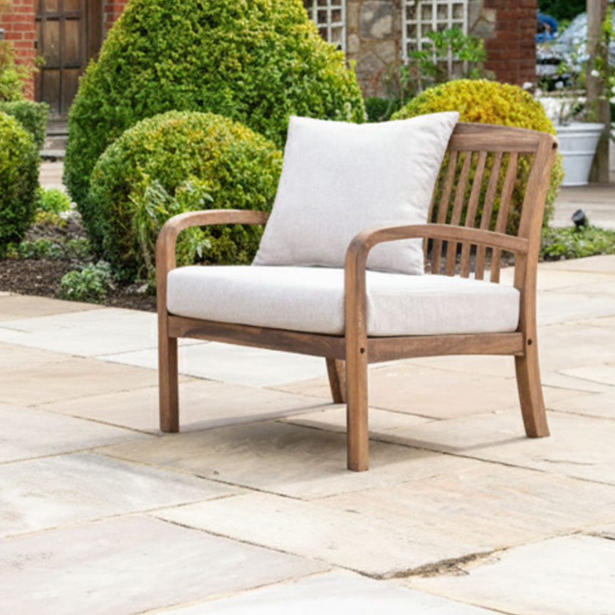 Our Bolney collection showcases beautiful, strong timber garden furniture, made from Acacia which is extremely durable. This dense hardwood is a rich brown colour with an attractive marbled grain.