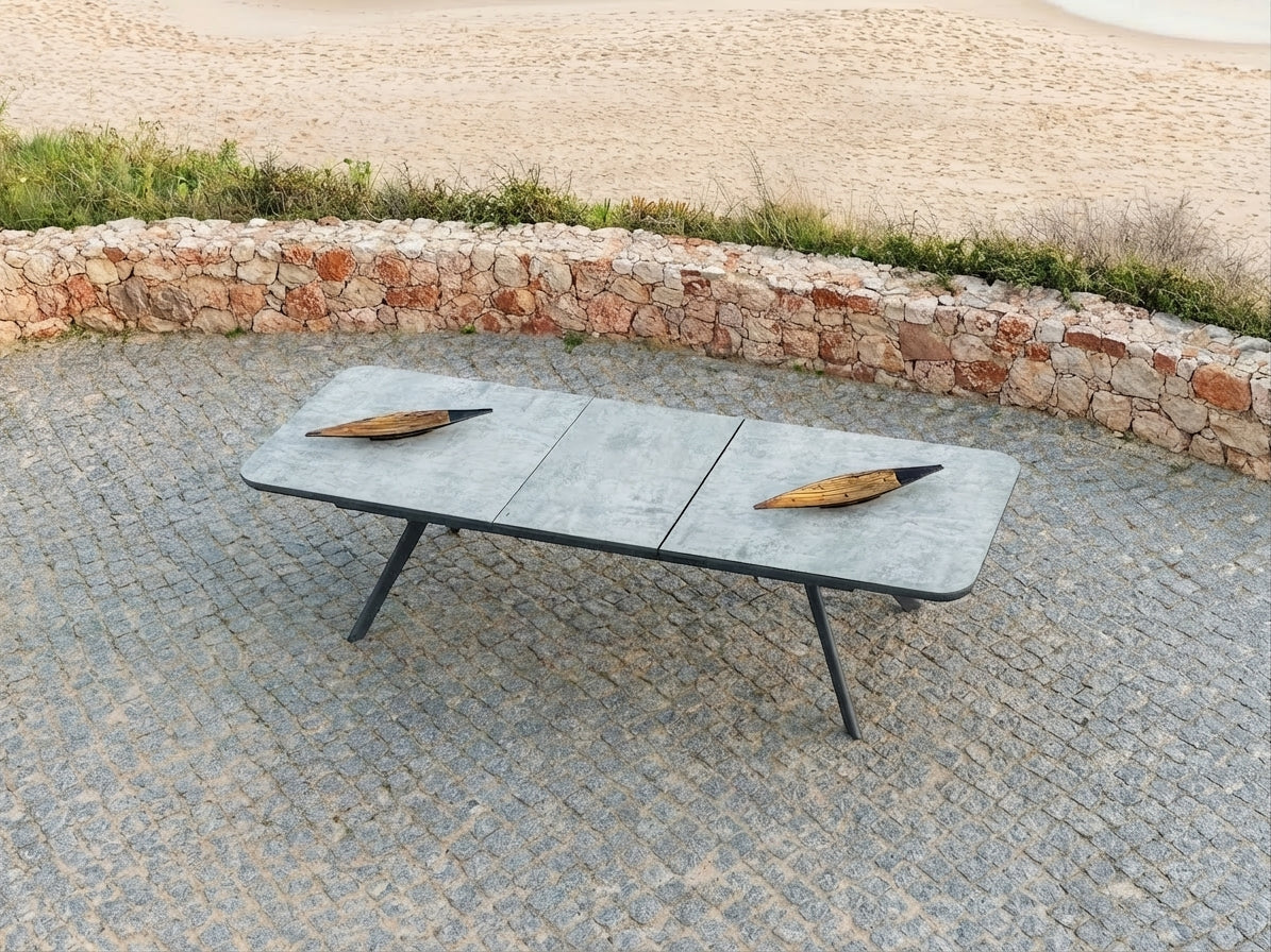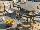 Entertain in style with the Rimini 12 Seater Extendable Dining Set - the perfect blend of contemporary design, practicality, and durability. This generously sized set features a sleek extendable table with a ceramic glass top, offering a versatile solution for everything from intimate family dinners to larger gatherings. The powder-coated aluminium frame in a dark grey, dappled matte finish adds a sophisticated touch while ensuring long-lasting performance in all weather conditions. The set includes twelve ergonomically designed side chairs that are fully stackable for convenient storage when not in use. With its clean lines, resilient materials, and thoughtful design, the Rimini dining set brings effortless elegance and function to your outdoor entertaining space. Backed by a five-year warranty, it's a smart investment in modern outdoor living.
