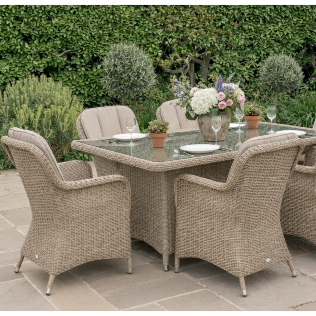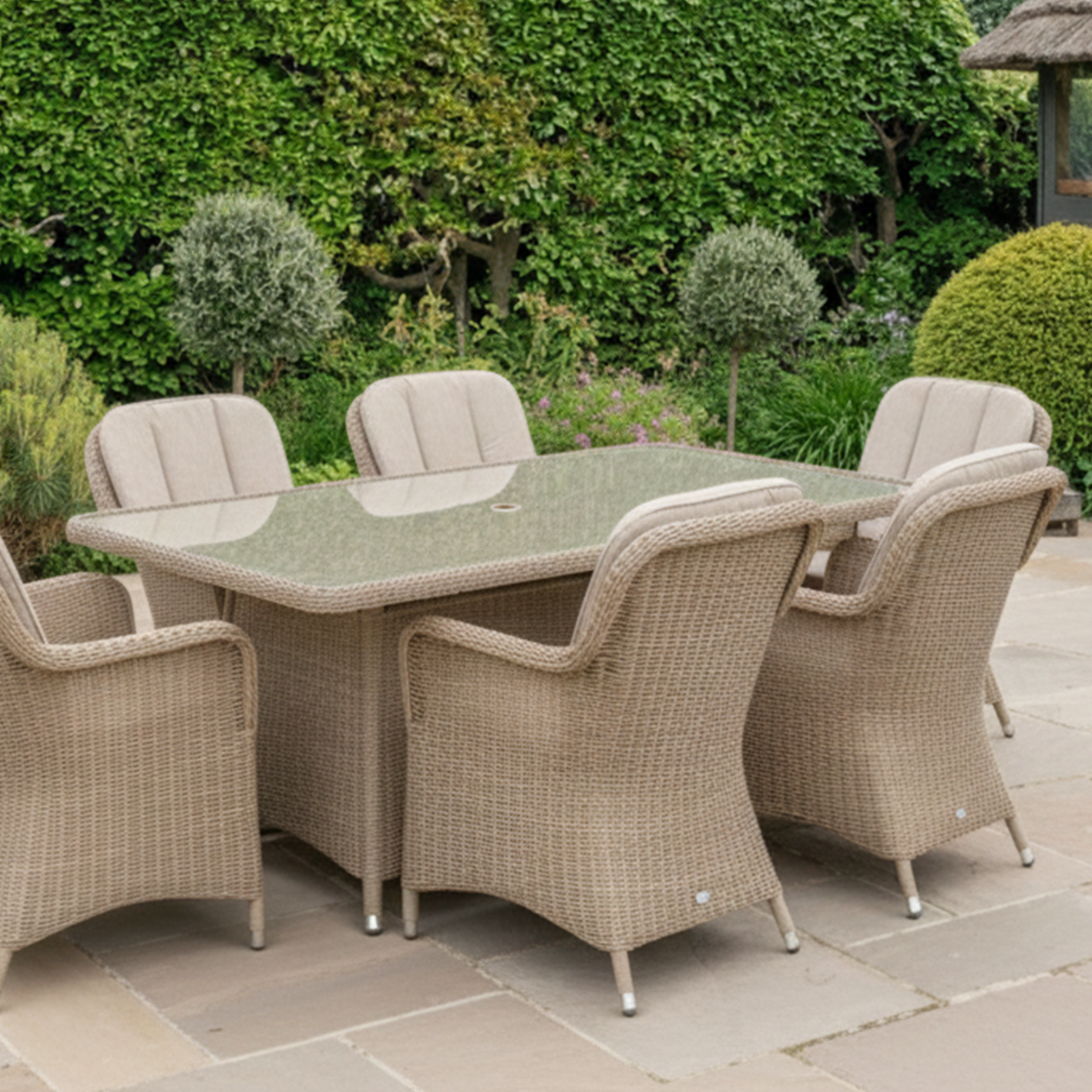 The Hazelmere 6-Seater Dining Set creates a striking centrepiece for outdoor dining and entertaining, comfortably seating up to six guests. Paired with our Hazelmere Classic Armchairs, it offers a stylish and comfortable setting for garden parties, family meals, and relaxed gatherings.
