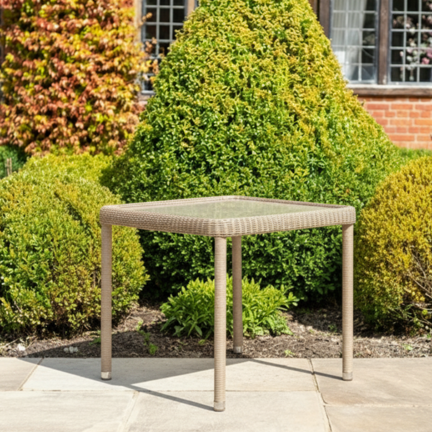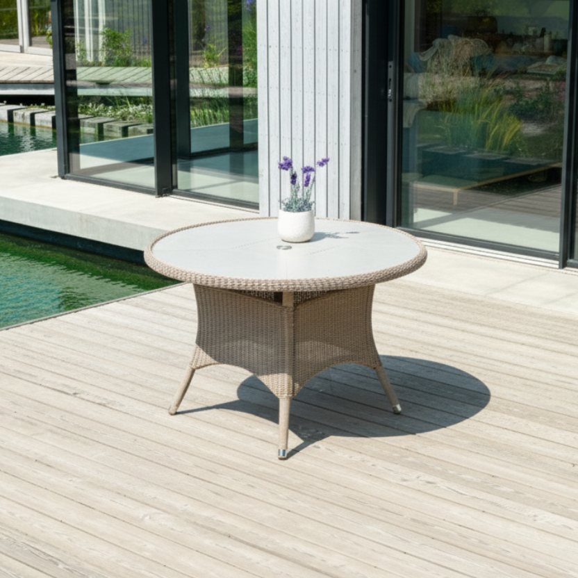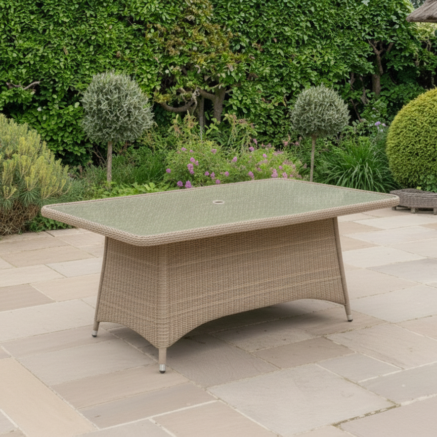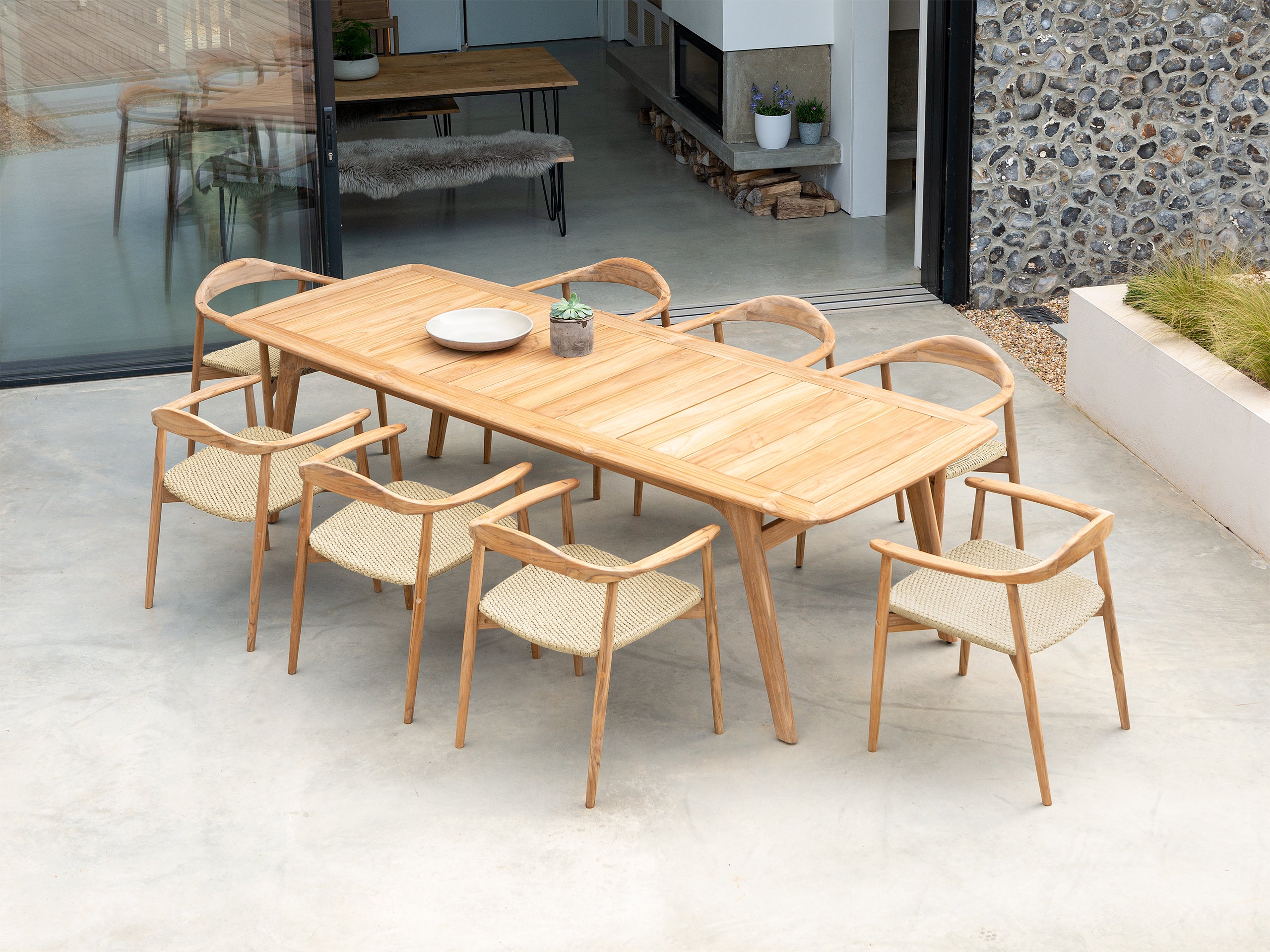 In our outdoor dining collection we have a choice of nearly a hundred different styles of tables and chairs from which to choose. Within this comprehensive range of outdoor dining furniture, there is a choice of different materials from woods and metals, to weaves and rattans. Prices vary across the collections dependent upon sizes, styles and materials. If you can't find what you are looking for, please get in touch as our customer services team will be able to give you more guidance.