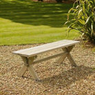 The bench can be used as a standalone piece or paired with a matching dining table, such as the 1.9 m Farmers Table from the same collection. It features sturdy crossed legs at each end and a central support bar, providing both strength and stability. Crafted from solid pine, it offers a natural, timeless look suited to a variety of settings.
