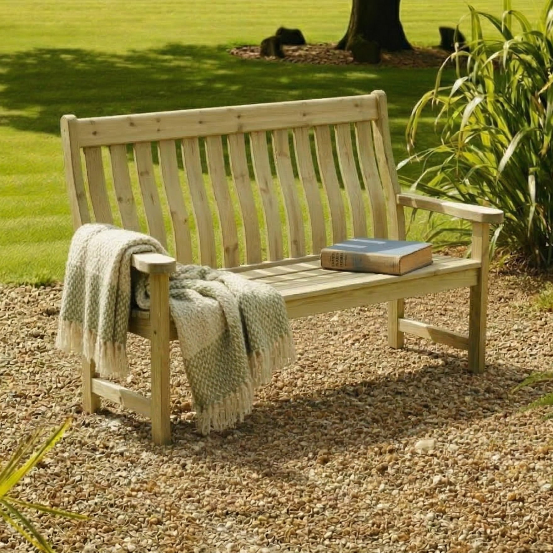 This bench design stands out with its slightly wider slats and taller backrest, creating a more contemporary and refined appearance. Measuring five feet in length, it comfortably accommodates two to three people, making it ideal for both private gardens and shared outdoor spaces. Combining practicality, affordability, and modern style, this bench is built for everyday use and is backed by a three-year warranty for added peace of mind.